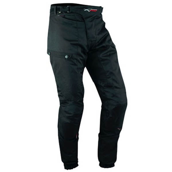 Črne hlače iz tekstila visoke odpornosti, z odstranljivimi ščitniki na kolenih. Sprednji žepi z zadrgo in elastičnimi gležnji. Elastičen pas, raztegljive v predelu kolen, notranja toplotna in vodoodporna zračna membrana, ki se lahko odstrani. Sprednji žepi z zračenjem na zadrgo, odstranljive naramnice z gumbi.