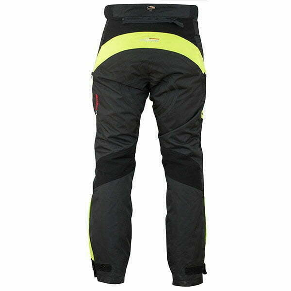 Tekstilne hlače z odsevnimi trakovi. Visoka odpornost na slabe vremenske pogoje in obrabo. Odstranljivi ščitniki na kolenih. Odstranljiva termo podloga. Vodoodporna zračna membrana. Stranski žepi z zračenjem na zadrgo. Hlače/jakna na zadrgo.