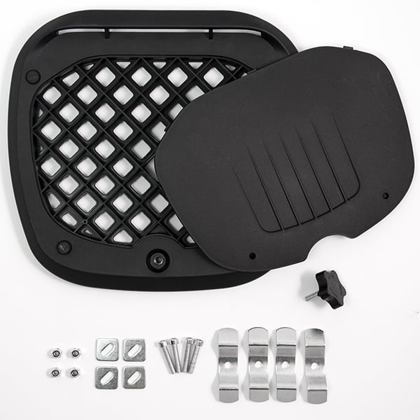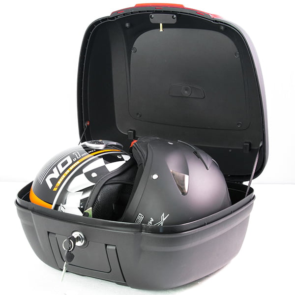 Prtljažnik je izdelan iz visoko trdne plastike. Njegova skupna prostornina je 40L, znotraj katere lahko postavite dve čelade JET. Komplet vsebuje: gumijasto hrbtišče, ključ za ročno zapiranje, univerzalno montažno ploščo, vijak za hitro demontažo.